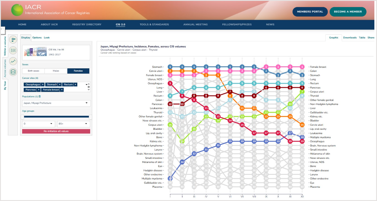 The IACR website was completely revamped with a focus on a global cancer registry directory, as well as CI5 2.0, a data visualization tool to examine registry-specific cancer incidence data by geographical area and over time based on the Cancer Incidence in Five Continents series.
