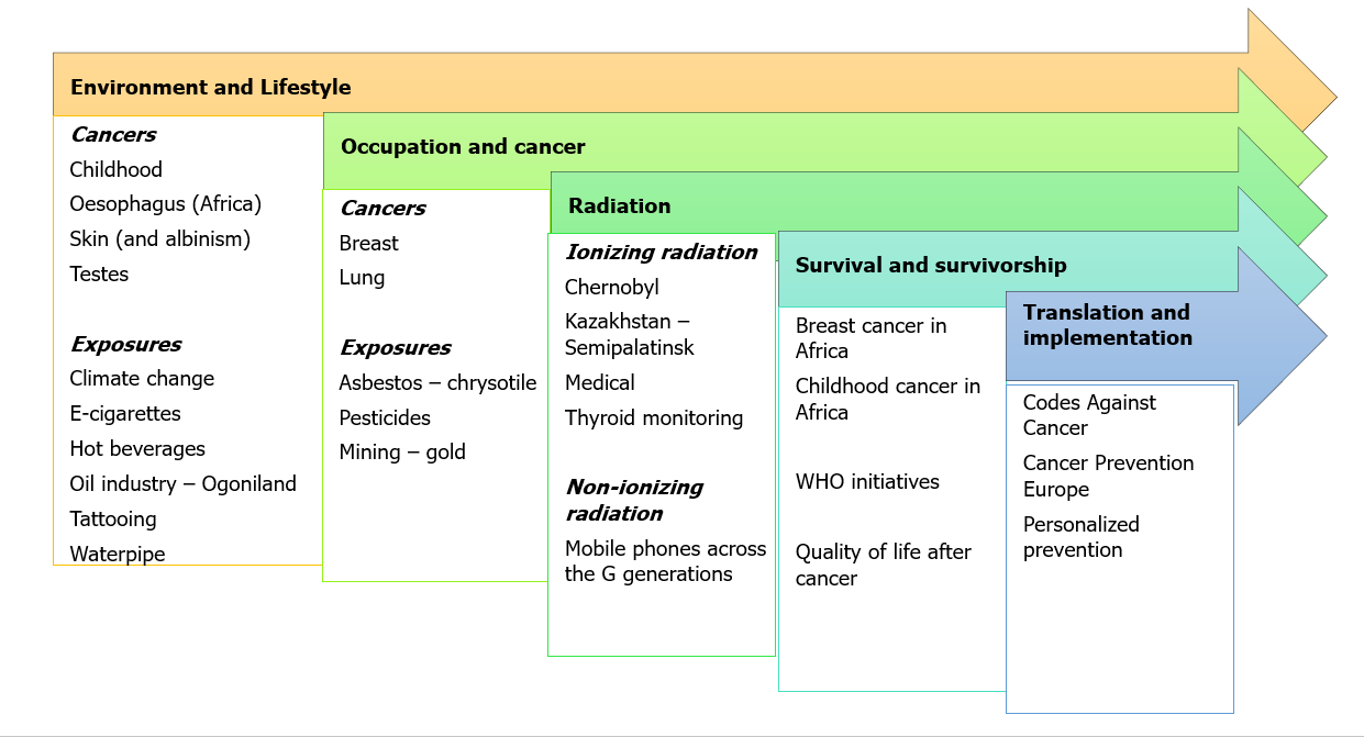 - translating and catalysing knowledge on lifestyle, environmental, occupational, and radiation-related risk factors, and on screening and vaccination with the respective collaborators, into recommendations at the individual and population level.