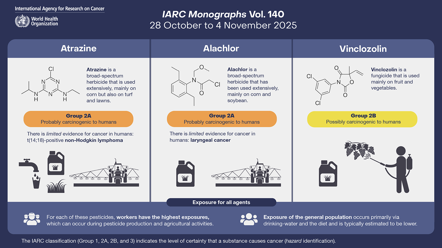 IARC Monographs evaluation of the carcinogenicity of atrazine, alachlor, and vinclozolin