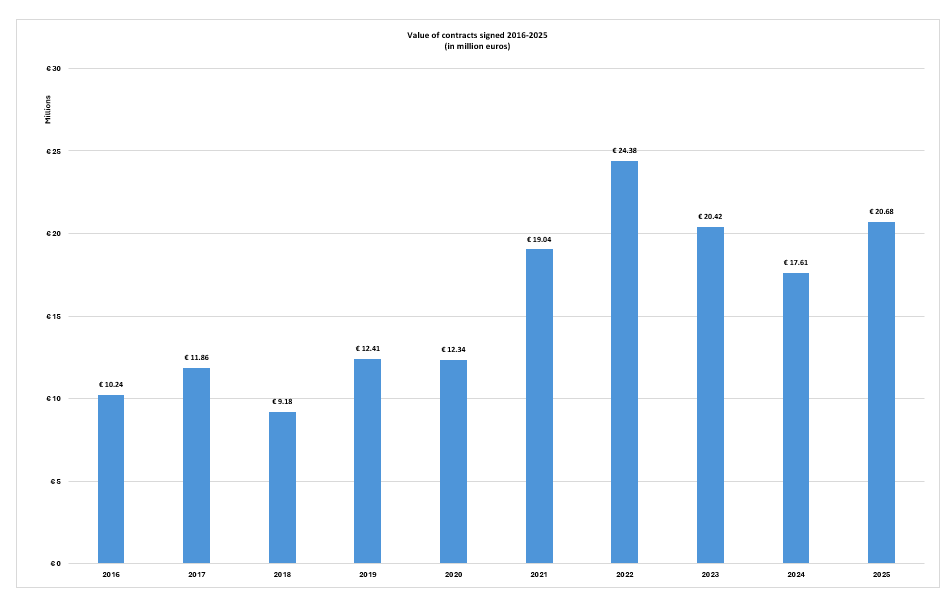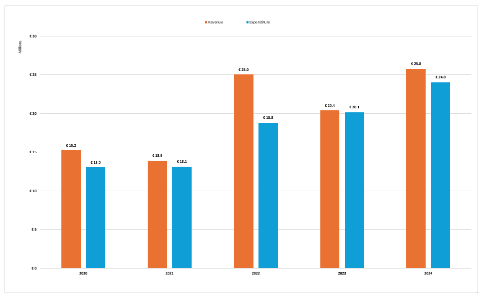 Ces contributions permettent au CIRC de mettre en œuvre sa stratégie à moyen terme en complétant le financement de son budget ordinaire. En 2024, la totalité des dépenses du CIRC s’élevaient à 52,9 millions d’euros, dont 41,0 % financées par le budget ordinaire, 42,7 % financées par des contributions volontaires, et les 16,3 % restants financées par d’autres fonds.
